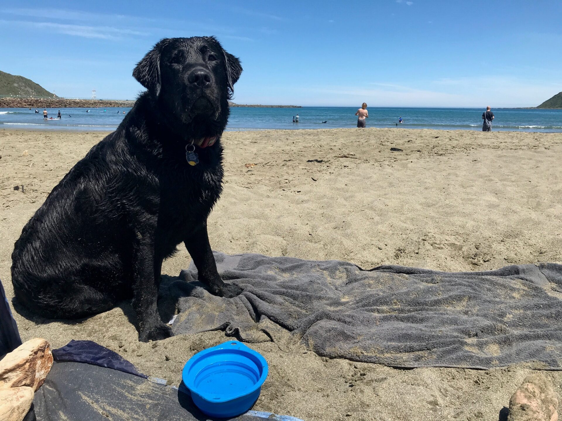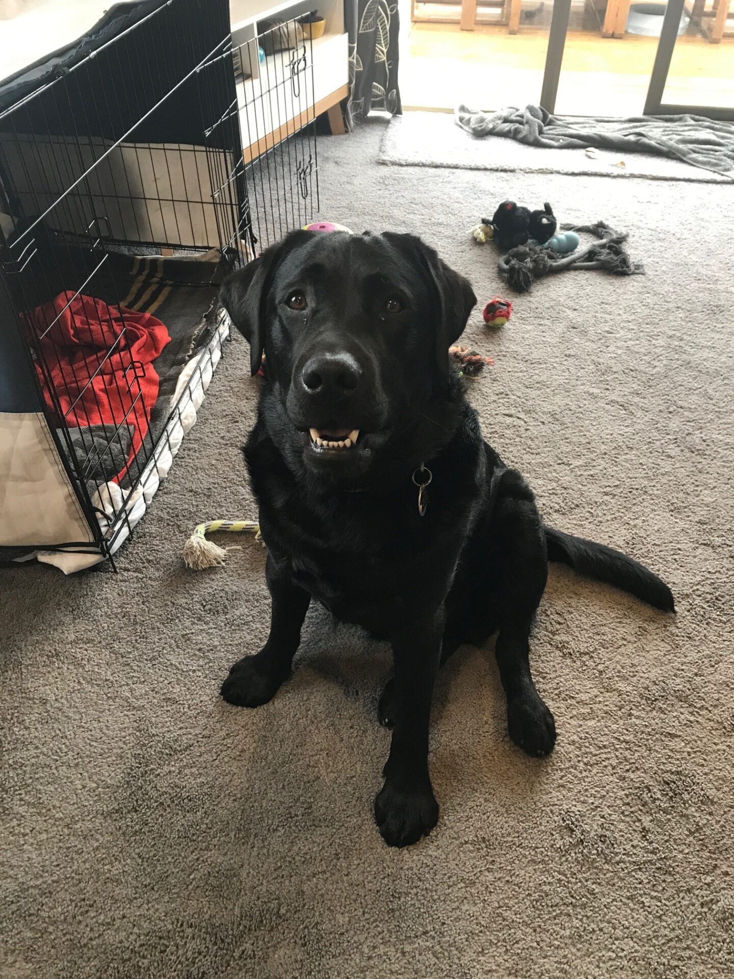 We have a beautiful 18 month old pedigree black Labrador called Hotdog. He’s a carrier of the curly coat gene so his coat is a bit longer than that of a traditional Labrador.
