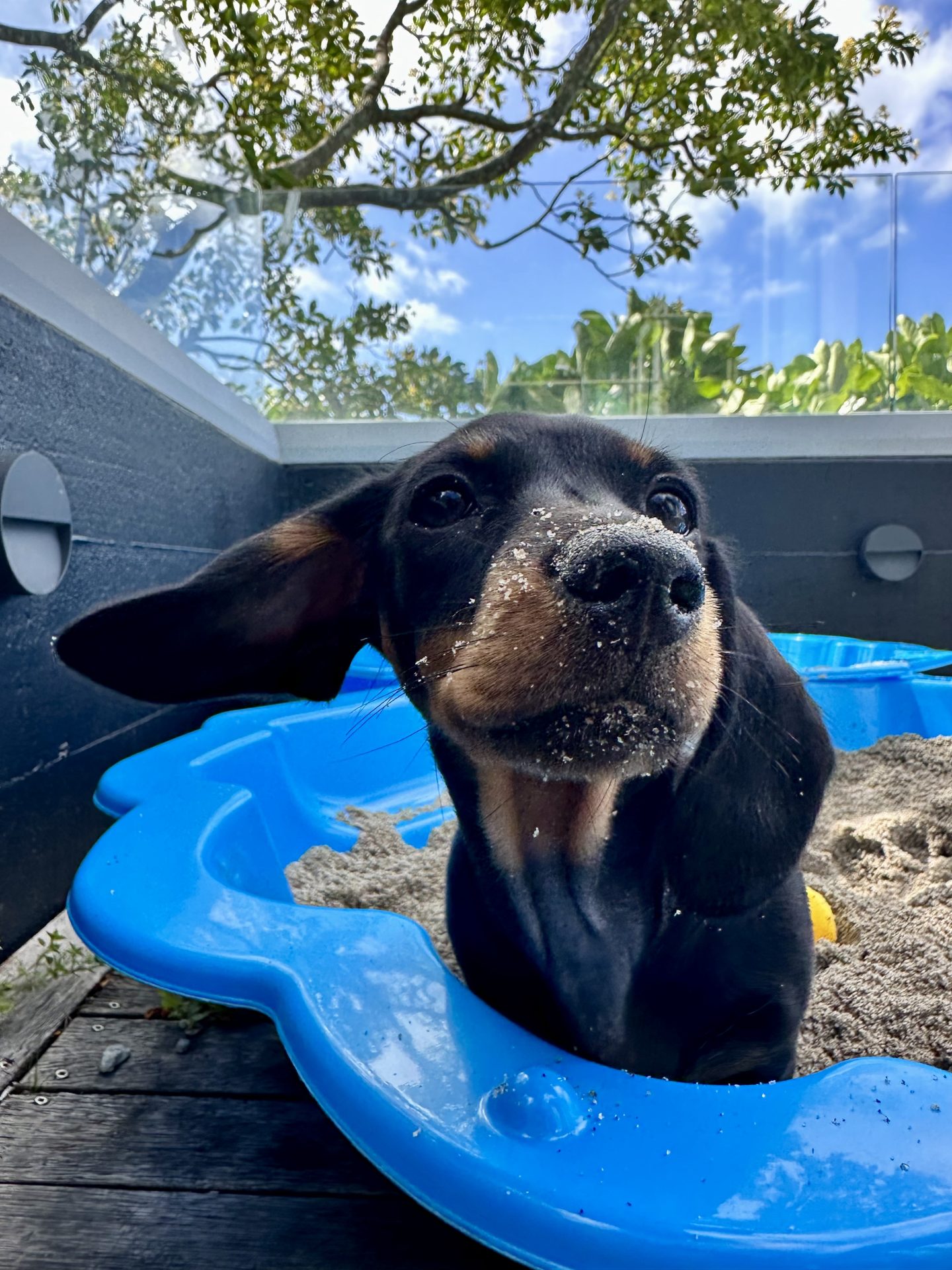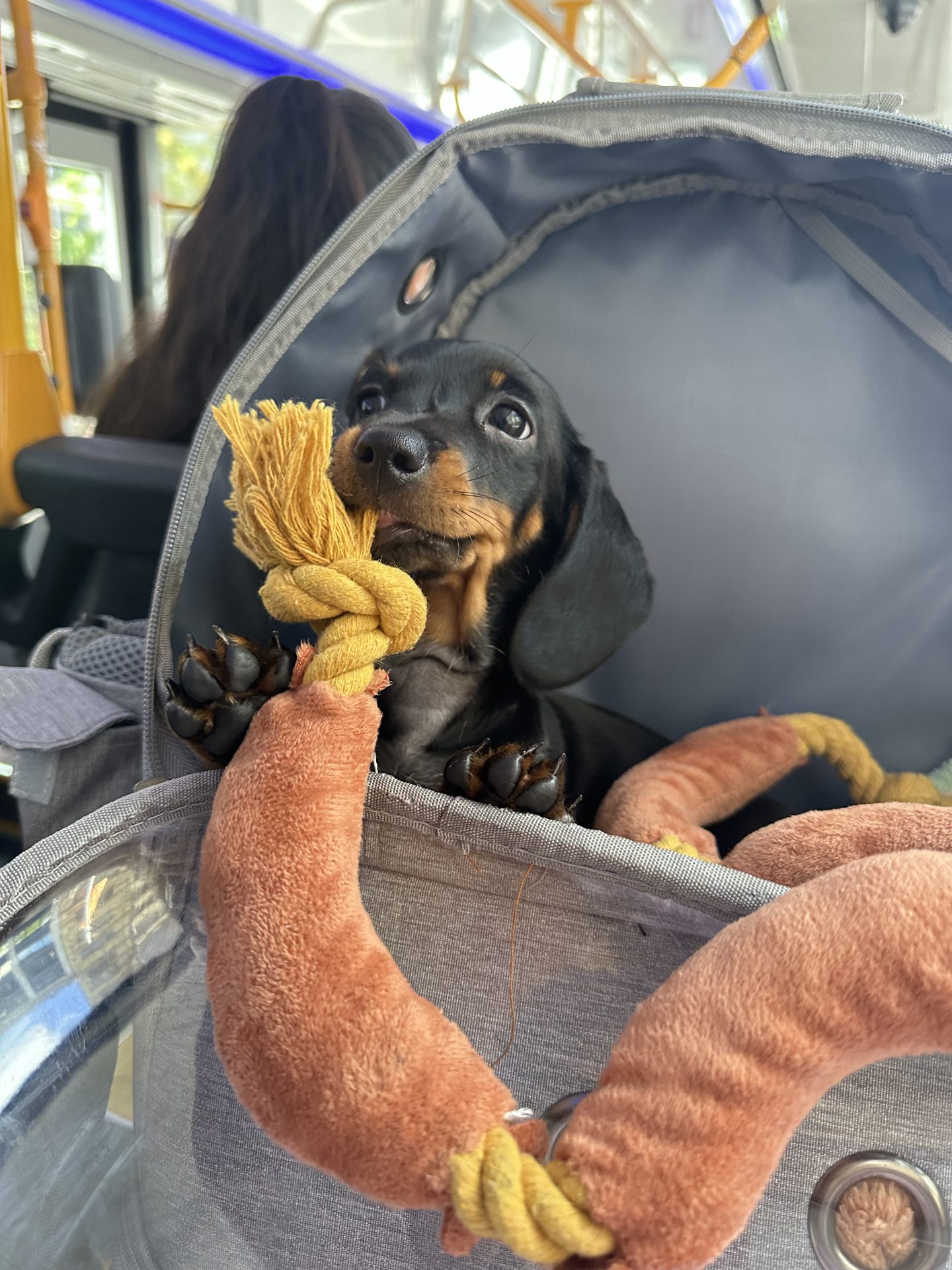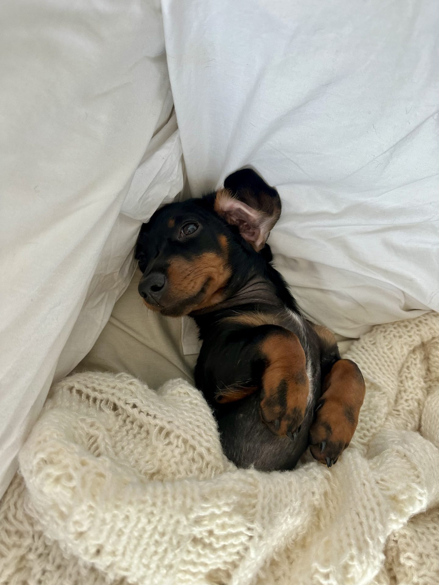 Olive is a 5 month old dachshound puppy. She is extremely friendly, well behaved, gentle and cuddly little girl.