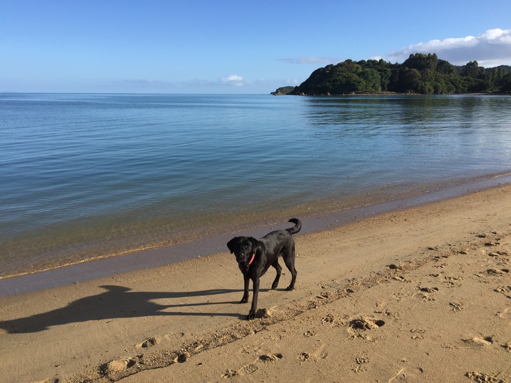 Pepper is a sweet-natured black labrador whose ears perk up when we she hears the word “walk”. She walks well on the lead, and loves checking out smells along the way. When off the lead she won’t ever go out of sight, and is pretty casual with other dogs – a quick sniff to say hello and that’s it (despite having an impressive set of hackles!). The Maitai River, Centre of NZ or the Botanics are her normal sniffing-grounds. She also loves the beach but unlike many labs she’s never keen to get wet unless coaxed (good news for the car ride home!). She’s not a high energy dog (not interested in fetching sticks or balls), so that makes her a good companion for carers of all ages.